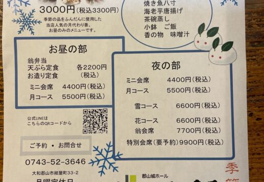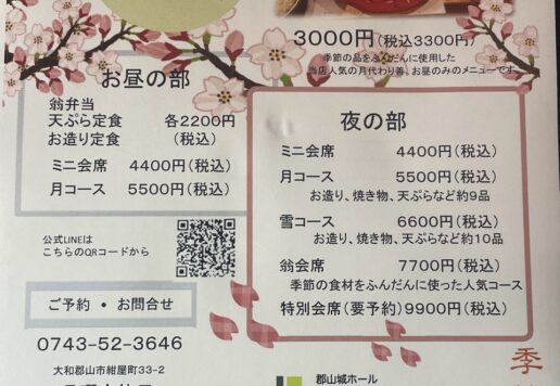 奈良中央市場で仕入れる新鮮な魚介類と、 地元の農家からの新鮮な野菜を使った料理はどれもおすすめできるお料理です。コース仕立てでお楽しみください。