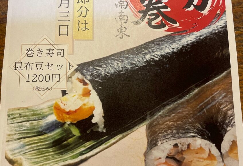 いつもありがとうございます😊 季節料理翁です😊 今年も恵方巻きさせていただきます😊 ご予約お待ちしてます😊 巻き寿司 昆布豆セット 1200円(税込み)